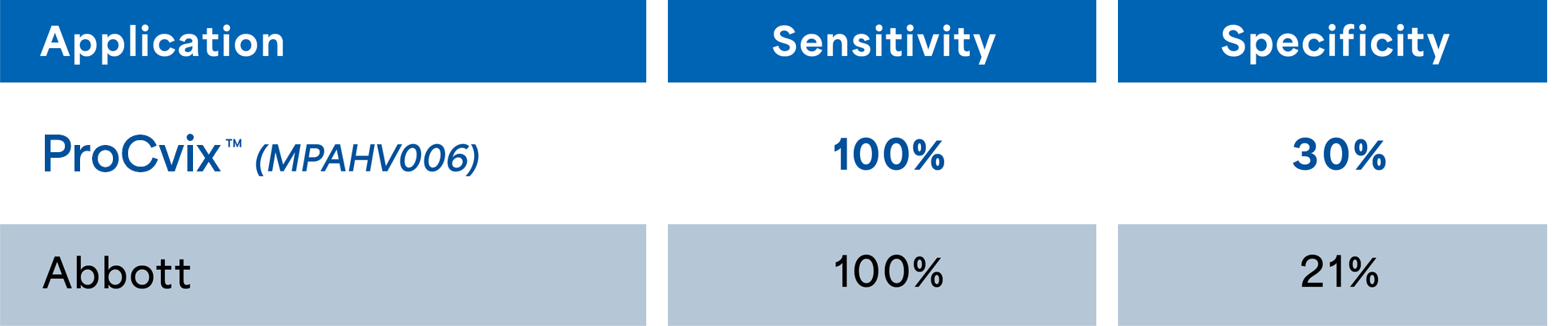 ProcVix is intended as a high-sensitivity screening assay. Lower specificity for cervical intraepithelial neoplasia is an expected and accepted trade-off in screening settings, where positive results are followed by confirmatory testing.